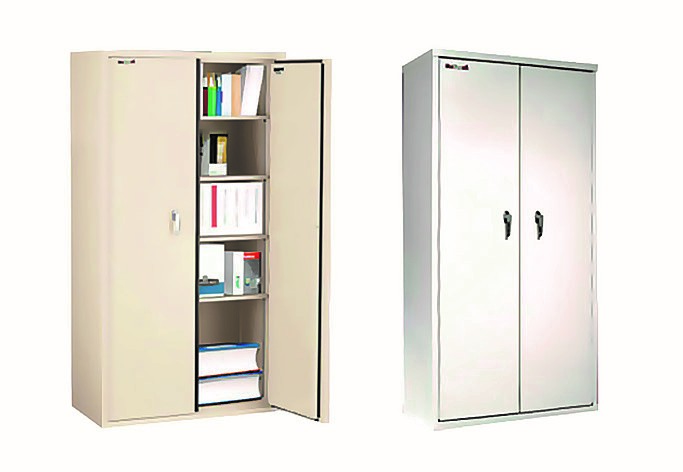 Gabinete metálico universal para resguardo de materiales, con cuatro entrepaños fijos, dos puertas y chapa. Fabricado en base de lámina rolada a base de frío calibre 22 y 24. Con soporte de charola en forma angular en lámina rolada en frío calibre 20 para soporte charola. Charola fabricada en lámina rolada en frío calibre 22 con doblez perimetral en forma de “U” para evitar pandeos o flechas con ranuras en los extremos. Puerta fabricada en lámina rolada en frío calibre 22 con bocado para recepción de chapa. Manija con chapa de cierre de tres puntos con mecanismo a base de varilla de cold roller de 1/4. Techo y piso con perforación ovalada para recepción de mecanismo con un diámetro de 9/32 x 1/2″, fabricada en lámina calibre 24.  Piso con regatón inferior estampado fabricado en lámina rolada en frio calibre 18. Todos los componentes son sometidos a un sistema de limpieza por medio de fosfatos para evitar corrosión y garantizar una mejor adherencia de la pintura.  Color a elección negro.