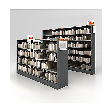 Conjunto modular mixto batería sencilla y doble cada uno formado por cuatro libreros.